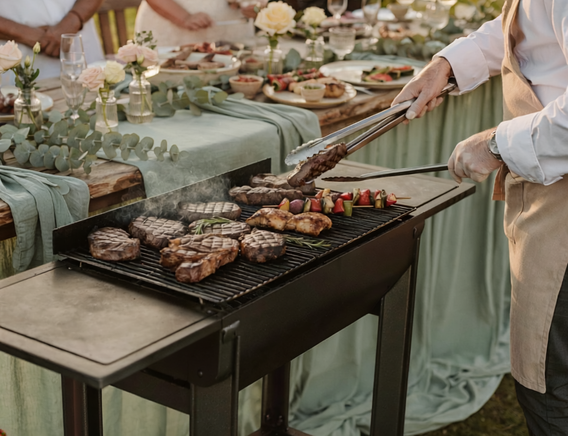Es gibt Fleisch, Fisch und vegetarische Alternativen.